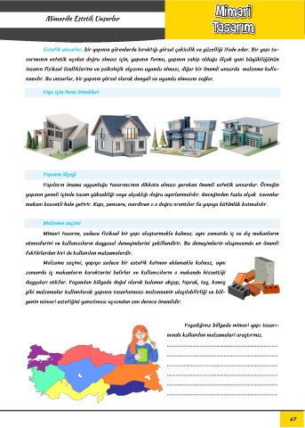 Yapıların insana uygunluğu tasarımcının dikkate alması gereken önemli estetik unsurdur. Örneğin
