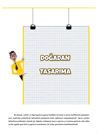 Bu ünitede, canlılar ve doğal yapıların yapısal özellikleri ile biçim ve görsel özelliklerinin gözlemlen-