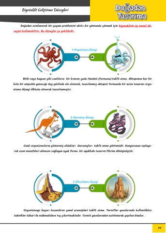 Doğadan esinlenerek bir yaşam problemini akılcı bir yöntemle çözmek için biyotaklitin üç temel dü-
