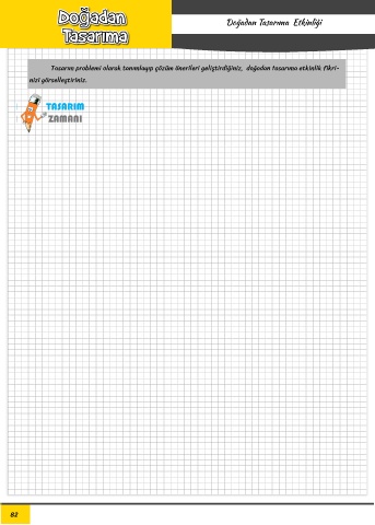 Doğadan Tasarıma Etkinliği Tasarım problemi olarak tanımlayıp çözüm önerileri geliştirdiğiniz, doğadan tasarıma etkinlik fikri- nizi görselleştiriniz. 82