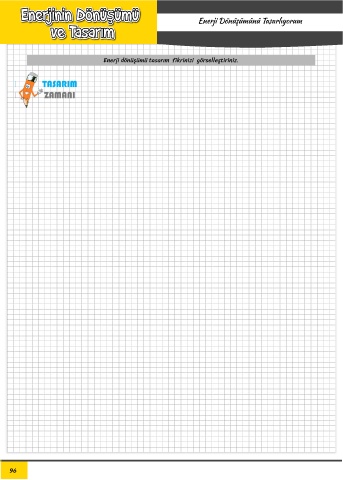 TEKNOLOJİ VE TASARIMIN TEMELLERİ Enerji Dönüşümünü Tasarlıyorum Teknoloji ve Tasarımı Öğreniyorum Te kn ol o ji ve T a sarı mı Öğ r e n i yor u m Enerji dönüşümü tasarım fikrinizi görselleştiriniz. 96