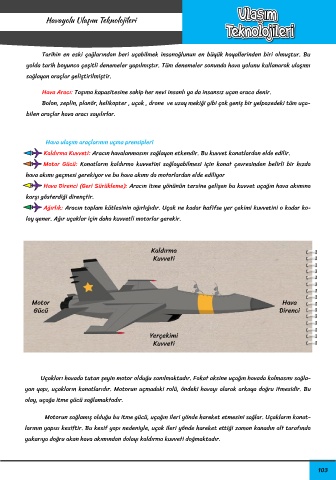 Kaldırma Kuvveti: Aracın havalanmasını sağlayan etkendir. Bu kuvvet kanatlardan elde edilir.