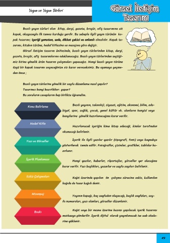 Görsel iletişim tasarım ünitesinde, basılı yayın türlerinden kitap, dergi,