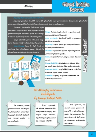Mizanpaj yaparken öncelikli olarak bir görsel etki alanı yaratmakla işe başlanır. Bu görsel etki