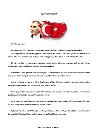 Birinci vazifen, Türk istiklâlini, Türk Cumhuriyetini, ilelebet, muhafaza ve müdafaa etmektir.