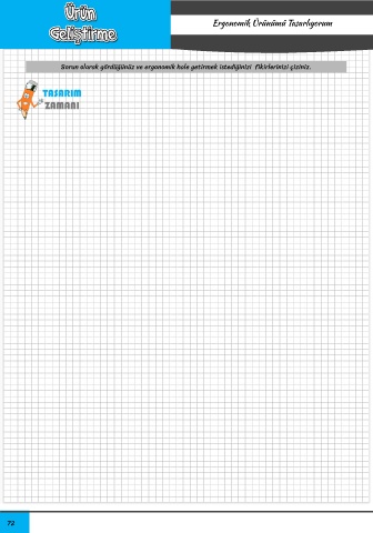 TEKNOLOJİ VE TASARIMIN TEMELLERİ Ergonomik Ürünümü Tasarlıyorum Teknoloji ve Tasarımı Öğreniyorum Sorun olarak gördüğünüz ve ergonomik hale getirmek istediğinizi fikirlerinizi çiziniz. 72