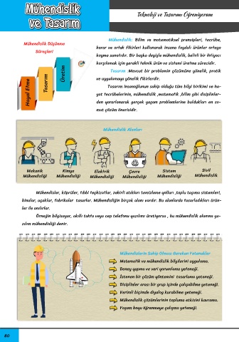 binalar, uçaklar, fabrikalar tasarlar. Mühendisliğin birçok alanı vardır. Bu alanlarda tasarladıkları ürün-