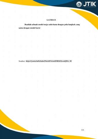 LATIHAN Buatlah sebuah model meja sederhana dengan pola langkah yang sama dengan model kursi Sumber: https://youtu.be/hAaho2NaAf8?si=efIFRXGLwaQlYc_W 125
