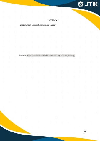LATIHAN Penggabungan gerakan karakter pada blender Sumber: https://youtu.be/GTcSmZeCeOY?si=MQk8UjLbAgmaa0q_ 193