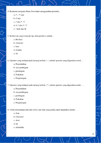 4. Komentar program dalam Java dapat menggunakan perintah...