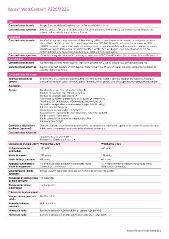 Consumo de energía: 230 V WorkCentre 7220                        WorkCentre 7225