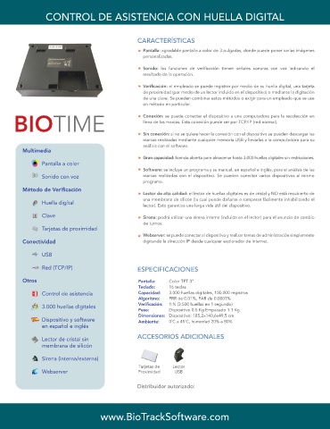 Control de asistencia Capacidad: 3.000 huellas digitales, 100.000 registros