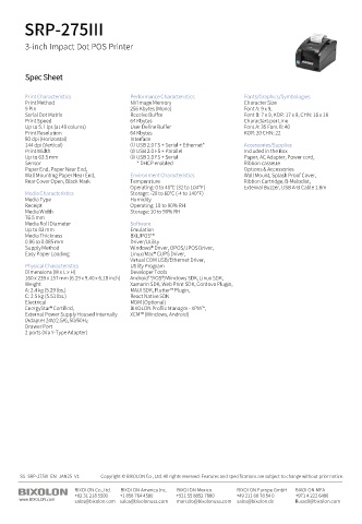 SS_SRP-275III_EN_JAN25_V1  Copyright © BIXOLON Co., Ltd. All rights reserved. Features and specifications are subject to change without prior notice.