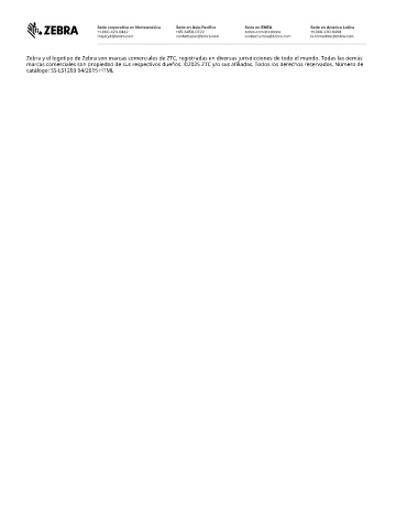 Zebra y el logotipo de Zebra son marcas comerciales de ZTC, registradas en diversas jurisdicciones de todo el mundo. Todas las demás