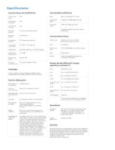 Velocidad de 547 escaneos por segundo Dimensiones 3,84 in Al x 2,75 in An x 7,34 in L
