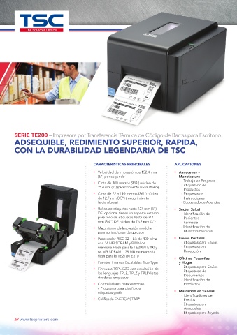 SERIE TE200 – Impresora por Transferencia Térmica de Código de Barras para Escritorio