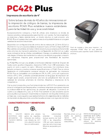 25,4mm (1 in) y con una velocidade de impresión hasta 127mm/s (5ips), la PC42t   Fácil  de  instalar  y  lista  para  imprimir  ,  la