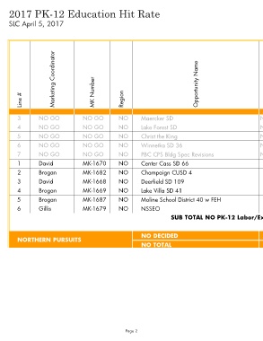 SLC April 5, 2017 2017 PK-12 Hit Rate Proposal Interview Won Lost