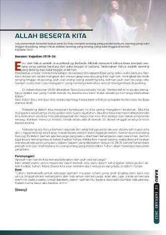 Dari kedua pribadi ini kita bisa belajar, terkadang kita seperti Esau yang selalu suka berburu. Ber-