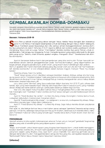 Dari ayat ini, kita belajar bahwa Yesus menitipkan peran sebagai “gembala” kepada setiap orang MINGGU