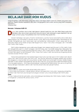 menilai segala sesuatu. Kita harus terus belajar membuka hati dan pikiran kita untuk di ajar Roh
