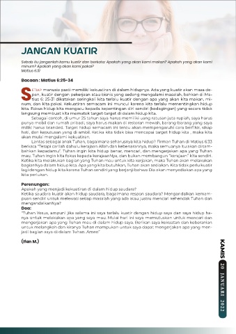 S Stius 6: 25-31 dikatakan seringkali kita terlalu kuatir dengan apa yang akan kita makan, mi-