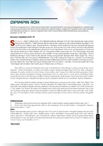 bantu kita dalam mengatur strategi yang tepat. Roh itu menuntun Yusuf untuk membuat lum-