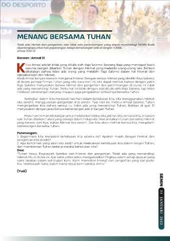 hikmat-Mu di dunia ini. Ajar kami untuk selalu mengandalkan Engkau dalam setiap apapun yang