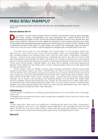 D Dmendengar panggilan Tuhan. Ketika Yesus berkata kepada mereka, “Mari, ikutlah Aku, dan
