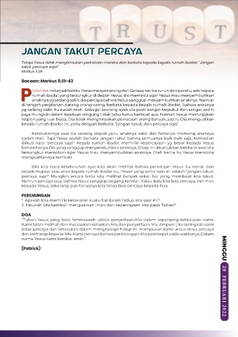 kepala rumah ibadat ini, yaitu dengan berkata: "jangan takut, dan percaya saja".