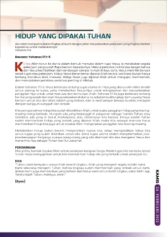 sekali tugas atau pekerjaan. Hidup Yesus benar-benar dipakai Allah secara luar biasa, bukan hanya