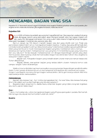 2.      Bagaimanakah sikap hatimu ketika kamu diberikan bagian yang tidak orang lain inginkan