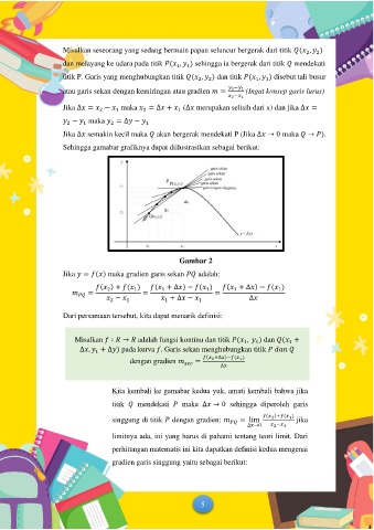 ∆ , + ∆ ) pada kurva . Garis sekan menghubungkan titik