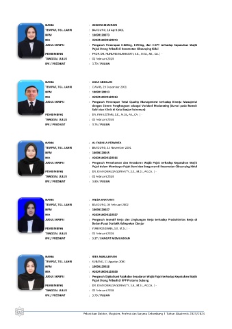 PEMBIMBING : DR. RINI LESTARI, S.E., M.SI., Ak., CA. | -
