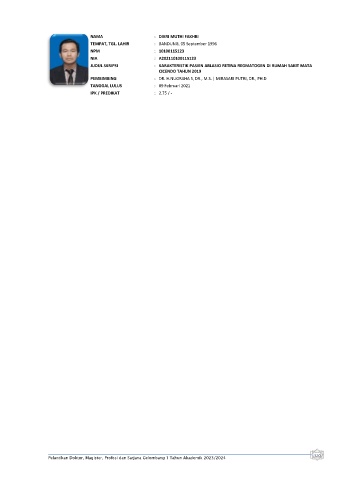PEMBIMBING : DR. H.NUGRAHA S, DR., M.S. | MIRASARI PUTRI, DR., PH.D