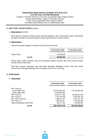 Deposit Sewa pada tanggal 31 Desember 2024 dan 2023 terdiri dari: