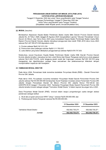 Pada tahun 2023, Perusahaan menerima tambahan Penyertaan Modal Daerah Pemerintah Provinsi DKI
