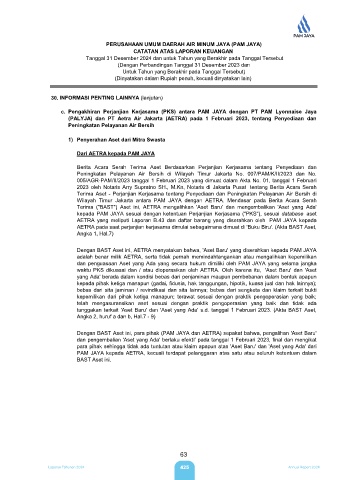 kepada PAM JAYA sesuai dengan ketentuan Perjanjian Kerjasama ("PKS"), sesuai database aset