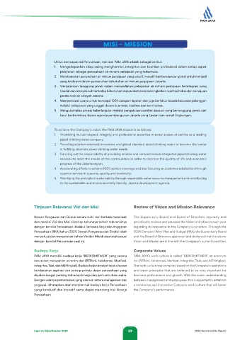 To achieve the Company’s vision, the PAM JAYA mission is as follows: