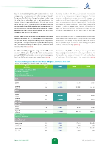 Efisiensi energi yang dilakukan Perusahaan merupakan dukungan Energy efficiencies carried out supports the Republic of Indonesia