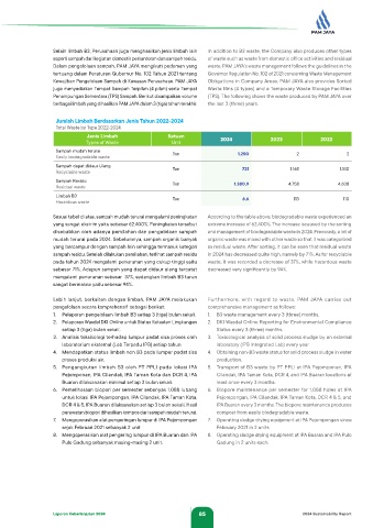 Selain limbah B3, Perusahaan juga menghasilkan jenis limbah lain In addition to B3 waste, the Company also produces other types