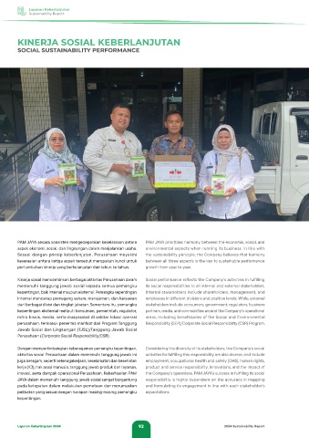 inovasi, serta dampak operasional Perusahaan. Keberhasilan PAM the Company’s operations. PAM JAYA’s success in fulfilling its social