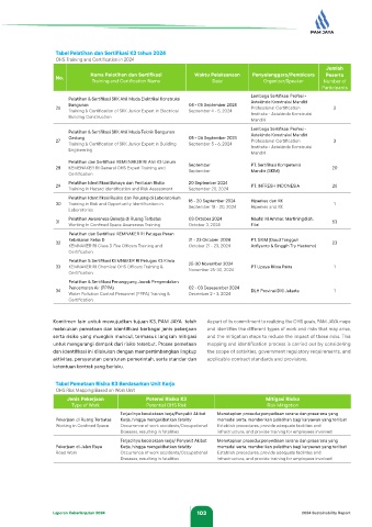 Tabel Pelatihan dan Sertifikasi K3 tahun 2024