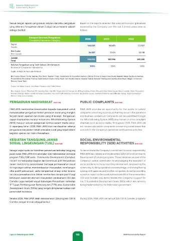 pengaduan masyarakat terkait persoalan sosial yang terjadi dalam occurred in the Company’s operations and business activities.