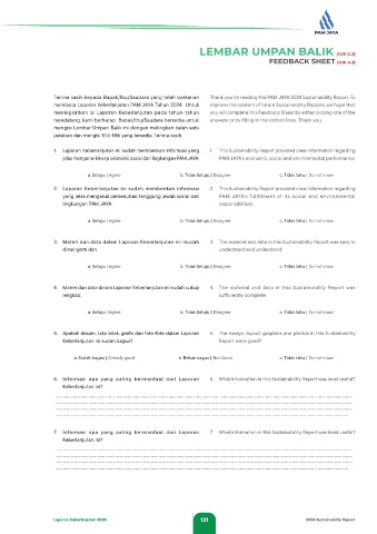 membaca Laporan Keberlanjutan PAM JAYA Tahun 2024. Untuk improve the content of future Sustainability Reports, we hope that