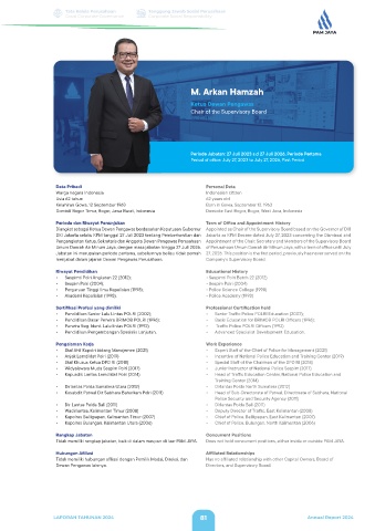 Diangkat sebagai Ketua Dewan Pengawas berdasarkan Keputusan Gubernur Appointed as Chair of the Supervisory Board based on the Governor of DKI