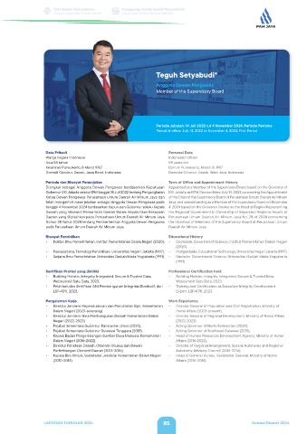 Diangkat sebagai Anggota Dewan Pengawas berdasarkan Keputusan Appointed as a Member of the Supervisory Board based on the Governor of