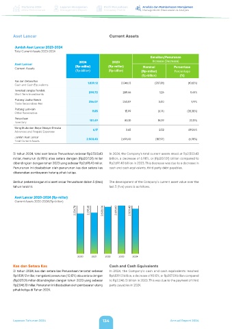 Di tahun 2024, total aset lancar Perusahaan sebesar Rp2.503,43 In 2024, the Company’s total current assets stood at Rp2,503.43