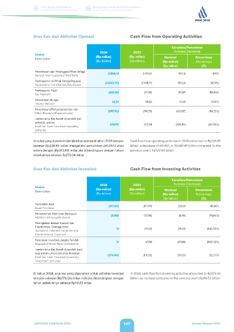 Arus kas yang diperoleh dari aktivitas operasi di tahun 2024 tercatat Cash flow from operating activities in 2024 amounted to Rp228.55