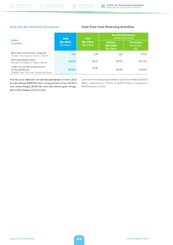 Arus kas yang diperoleh dari aktivitas pendanaan di tahun 2024 Cash flow from financing activities in 2024 amounted to Rp59.50